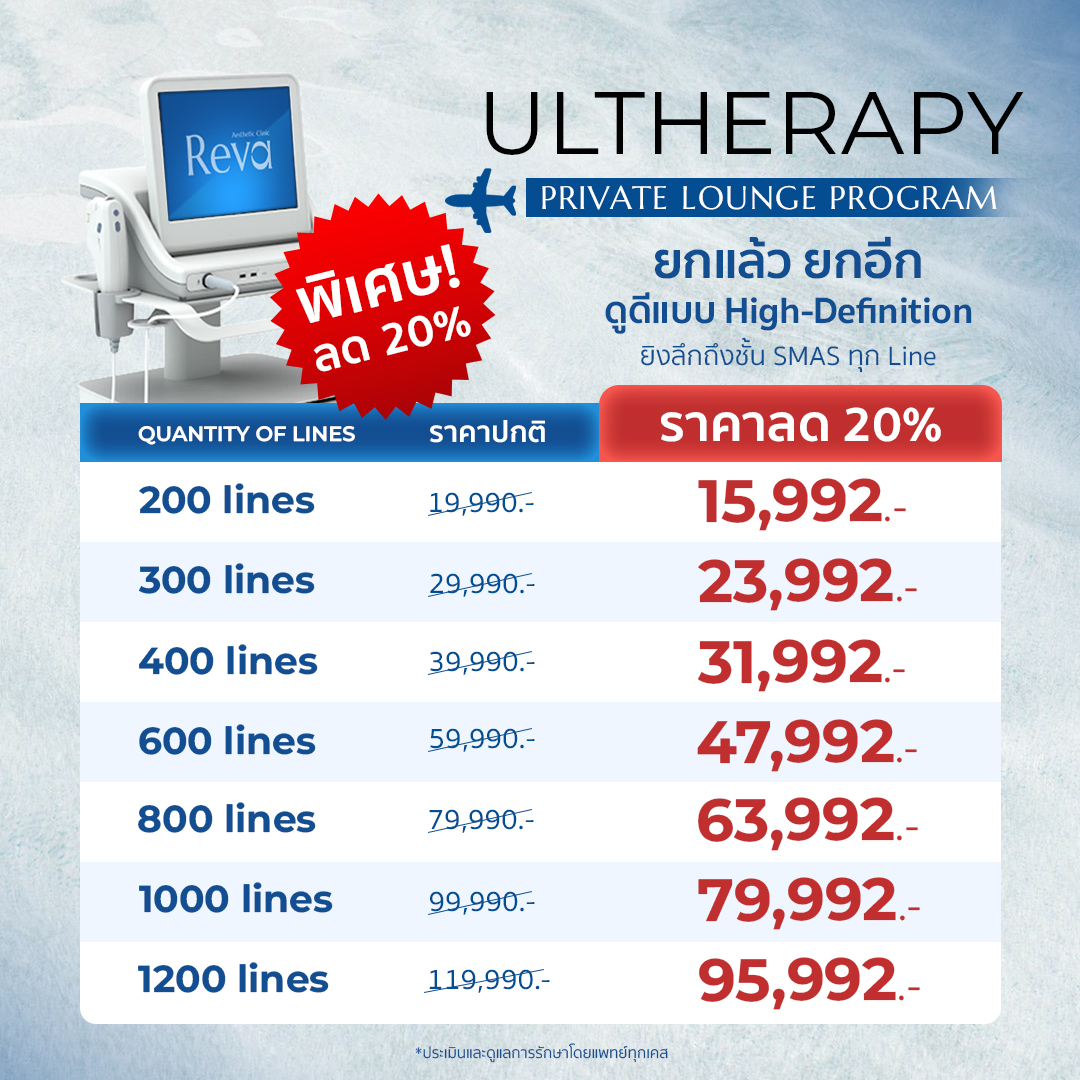 Ultraformer MPT Program คือ โปรแกรมการรักษาที่ช่วยในการยกกระชับใบหน้าที่หย่อนคล้อยของคนไข้ทุกคนโดยไม่ต้องผ่าตัด ไม่ต้องพักฟื้น มีชื่อว่า New Ultraformer MPT MMFU ซึ่งเป็นเครื่อง HIFU หรือ High Intensity Focus Ultrasound ซึ่งที่ Reva มีครบทุกหัว ทำให้ผิวของคุณยกกระชับได้ทุกชั้นผิว